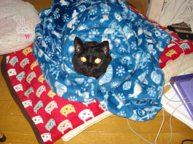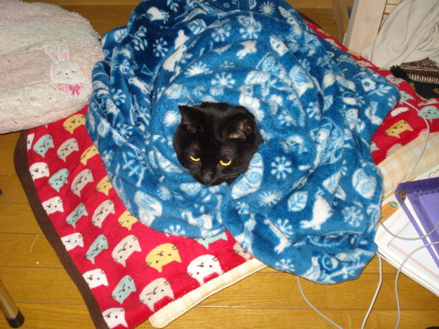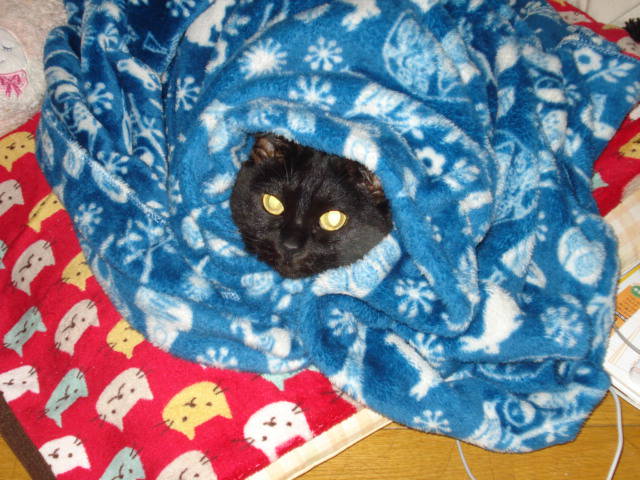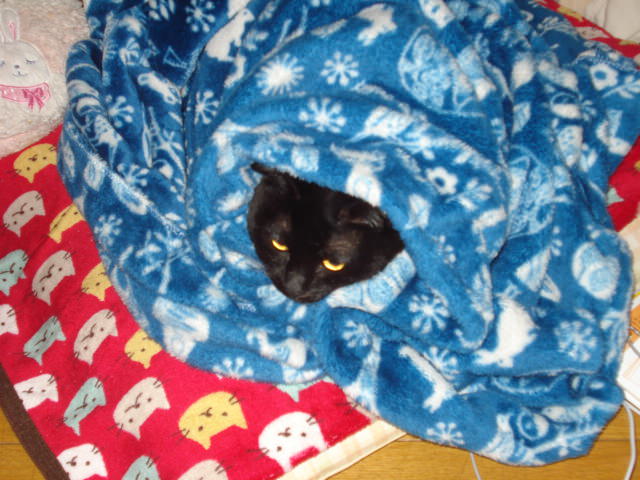 もふもふ毛布に包まれている。 とても あたたかそうだ。